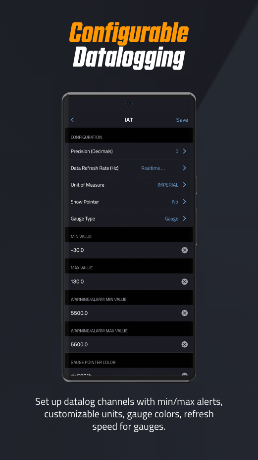 - Datalog sharing and charting without a need to upload to 3rd party websites or apps using the mobile app or web browser